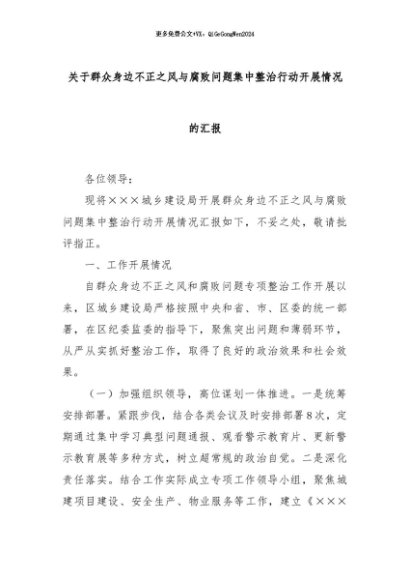 【七哥公文】2024年:关于群众身边不正之风与腐败问题集中整治行动开展情况的汇报+更多免费公文+VX:QiGeGongWen2024