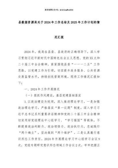 【七哥公文】2024年:县数据资源局关于2024年工作总结及2025年工作计划的情况汇报+更多免费公文+VX:QiGeGongWen2024