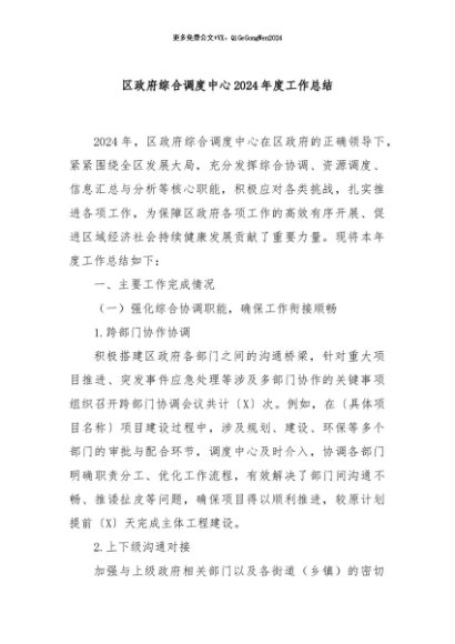 / 【七哥公文】2024年:区政府综合调度中心2024年度工作总结+更多免费公文+VX:QiGeGongWen2024