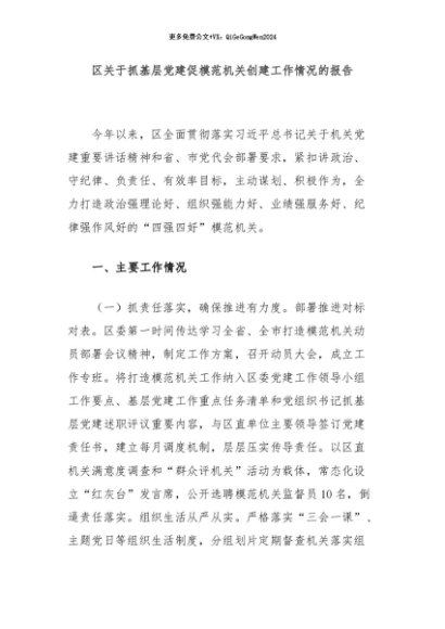 / 【七哥公文】2024年:区关于抓基层党建促模范机关创建工作情况的报告+更多免费公文+VX:QiGeGongWen2024