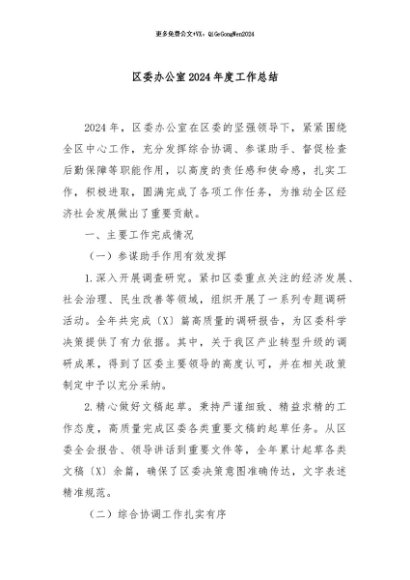 / 【七哥公文】2024年:区委办公室2024年度工作总结+更多免费公文+VX:QiGeGongWen2024
