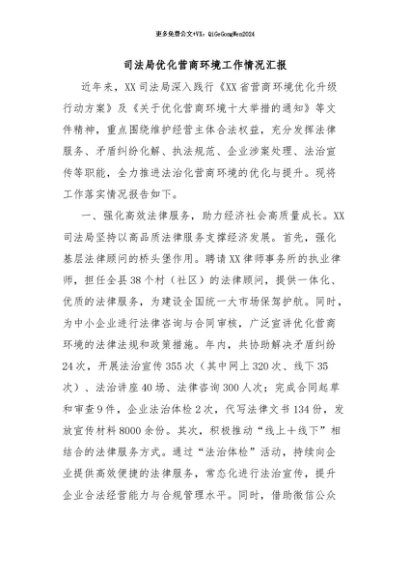 / 【七哥公文】2024年:司法局优化营商环境工作情况汇报+更多免费公文+VX:QiGeGongWen2024