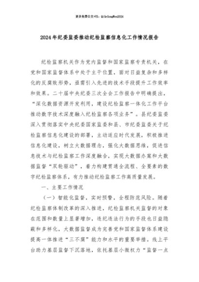 / 【七哥公文】2024年:2024年纪委监委推动纪检监察信息化工作情况报告+更多免费公文+VX:QiGeGongWen2024