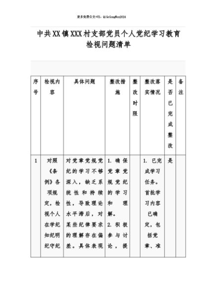 【七哥公文】2024年:中共XX镇XXX村支部党员个人党纪学习教育检视问题清单+更多免费公文+VX:QiGeGongWen2024