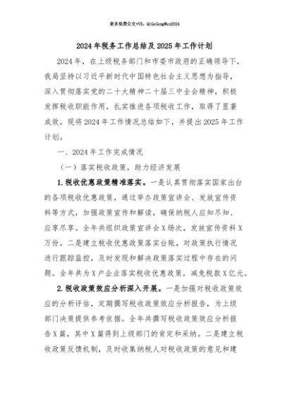 / 【七哥公文】2024年:2024年税务工作总结及2025年工作计划+更多免费公文+VX:QiGeGongWen2024