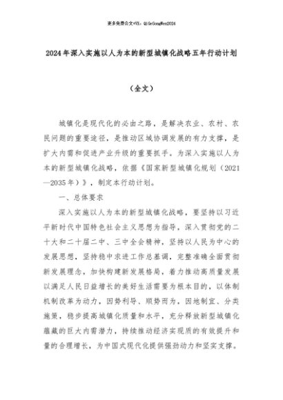 【七哥公文】2024年:2024年深入实施以人为本的新型城镇化战略五年行动计划(全文)+更多免费公文+VX:QiGeGongWen2024