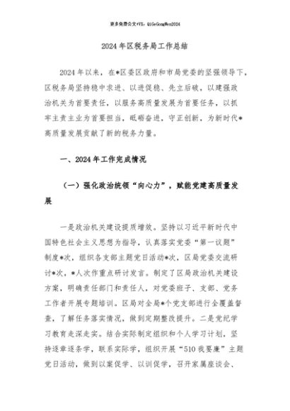 / 【七哥公文】2024年:2024年区税务局工作总结+更多免费公文+VX:QiGeGongWen2024