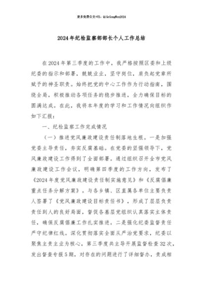 / 【七哥公文】2024年:2024年纪检监察部部长个人工作总结+更多免费公文+VX:QiGeGongWen2024