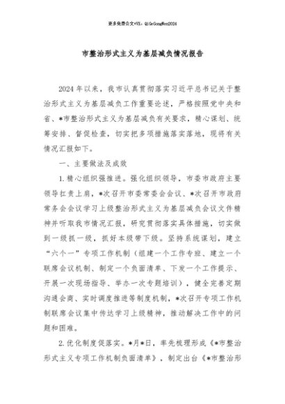 / 【七哥公文】2024年:市整治形式主义为基层减负情况报告+更多免费公文+VX:QiGeGongWen2024