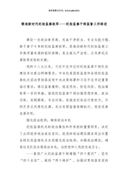 【七哥公文】2024年:锻造新时代纪检监察铁军——纪检监察干部监督工作综述+更多免费公文+VX:QiGeGongWen2024