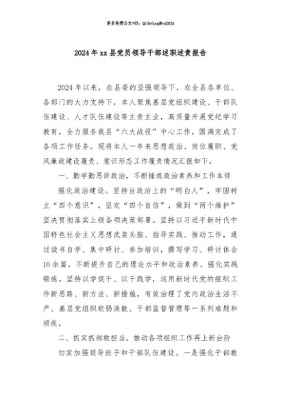 / 【七哥公文】2024年:2024年xx县党员领导干部述职述责报告+更多免费公文+VX:QiGeGongWen2024