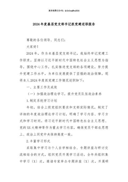 / 【七哥公文】2024年:2024年度基层党支部书记抓党建述职报告+更多免费公文+VX:QiGeGongWen2024