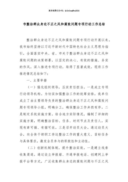 / 【七哥公文】2024年:市整治群众身边不正之风和腐败问题专项行动工作总结+更多免费公文+VX:QiGeGongWen2024