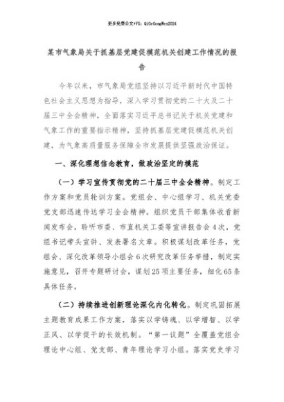【七哥公文】2024年:某市气象局关于抓基层党建促模范机关创建工作情况的报告+更多免费公文+VX:QiGeGongWen2024