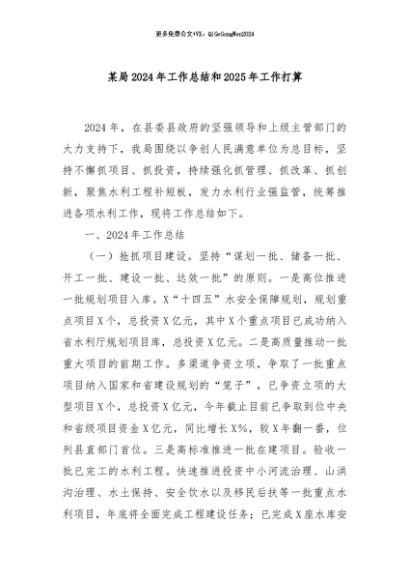 / 【七哥公文】2024年:某局2024年工作总结和2025年工作打算+更多免费公文+VX:QiGeGongWen2024