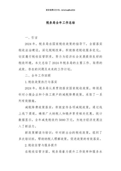 / 【七哥公文】2024年:税务局全年工作总结+更多免费公文+VX:QiGeGongWen2024