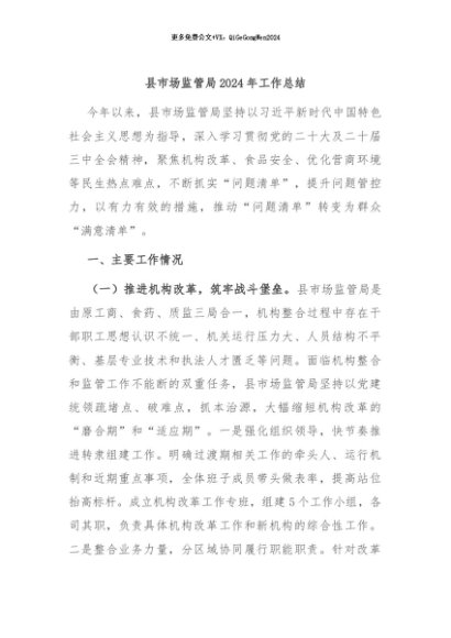 / 【七哥公文】2024年:县市场监管局2024年工作总结+更多免费公文+VX:QiGeGongWen2024