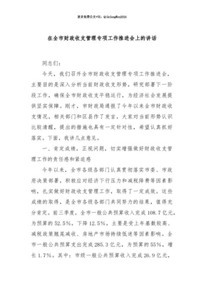 / 【七哥公文】2024年:在全市财政收支管理专项工作推进会上的讲话+更多免费公文+VX:QiGeGongWen2024