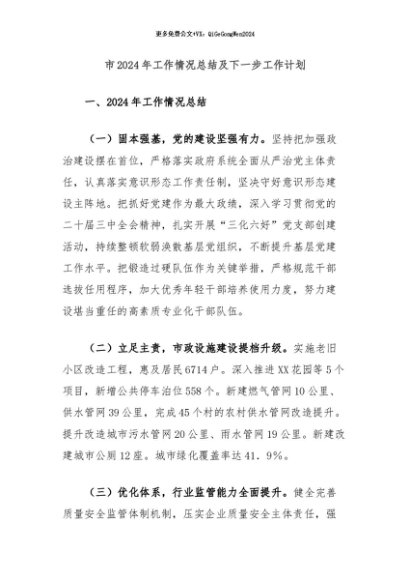 / 【七哥公文】2024年:市2024年工作情况总结及下一步工作计划+更多免费公文+VX:QiGeGongWen2024