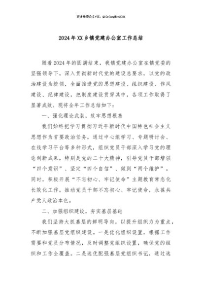 / 【七哥公文】2024年:2024年XX乡镇党建办公室工作总结 (1)+更多免费公文+VX:QiGeGongWen2024