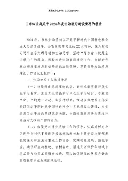 / 【七哥公文】2024年:X市林业局关于2024年度法治政府建设情况的报告+更多免费公文+VX:QiGeGongWen2024