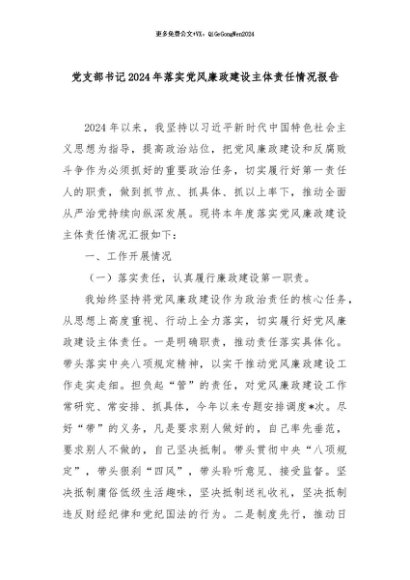 【七哥公文】2024年:党支部书记2024年落实党风廉政建设主体责任情况报告+更多免费公文+VX:QiGeGongWen2024