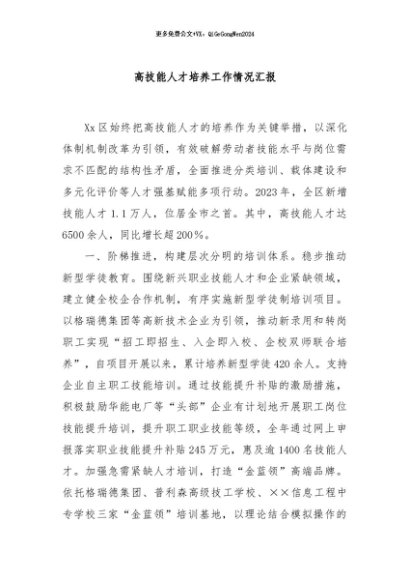 / 【七哥公文】2024年:高技能人才培养工作情况汇报+更多免费公文+VX:QiGeGongWen2024