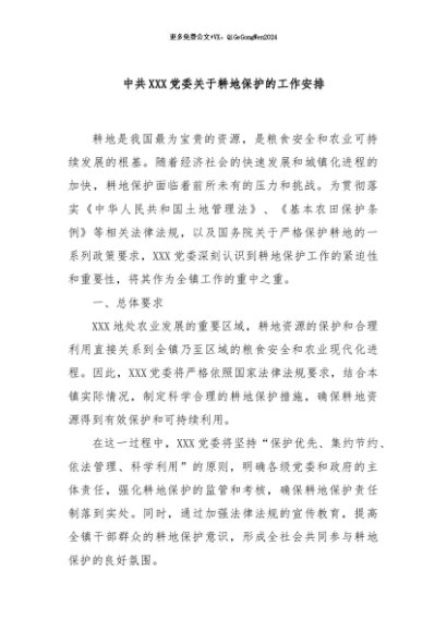 / 【七哥公文】2024年:中共XXX党委关于耕地保护的工作安排+更多免费公文+VX:QiGeGongWen2024