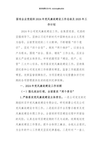 【七哥公文】2024年:国有企业党组织2024年党风廉政建设工作总结及2025年工作计划+更多免费公文+VX:QiGeGongWen2024