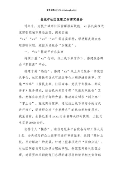 / 【七哥公文】2024年:县城市社区党建工作情况报告+更多免费公文+VX:QiGeGongWen2024