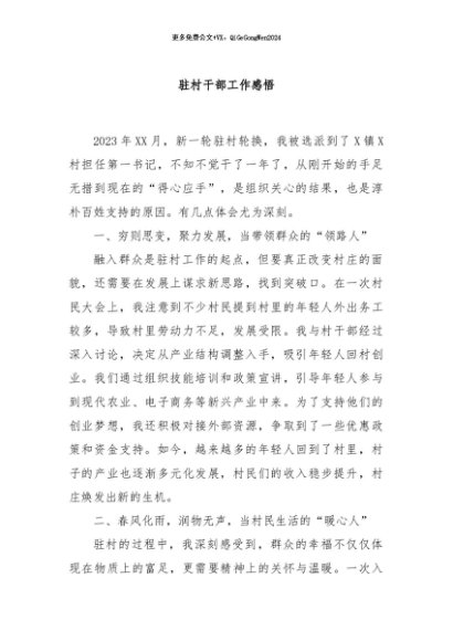 / 【七哥公文】2024年:驻村干部工作感悟+更多免费公文+VX:QiGeGongWen2024