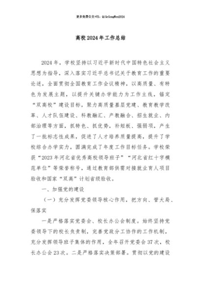 / 【七哥公文】2024年:高校2024年工作总结+更多免费公文+VX:QiGeGongWen2024