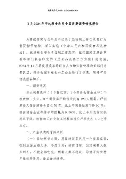 / 【七哥公文】2024年:X县2024年节约粮食和反食品浪费调查情况报告+更多免费公文+VX:QiGeGongWen2024