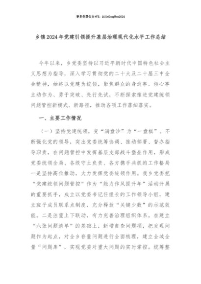 【七哥公文】2024年:乡镇2024年党建引领提升基层治理现代化水平工作总结 (1)+更多免费公文+VX:QiGeGongWen2024