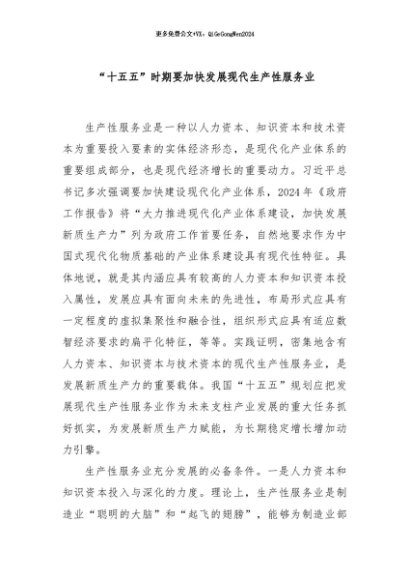 / 【七哥公文】2024年:“十五五”时期要加快发展现代生产性服务业+更多免费公文+VX:QiGeGongWen2024
