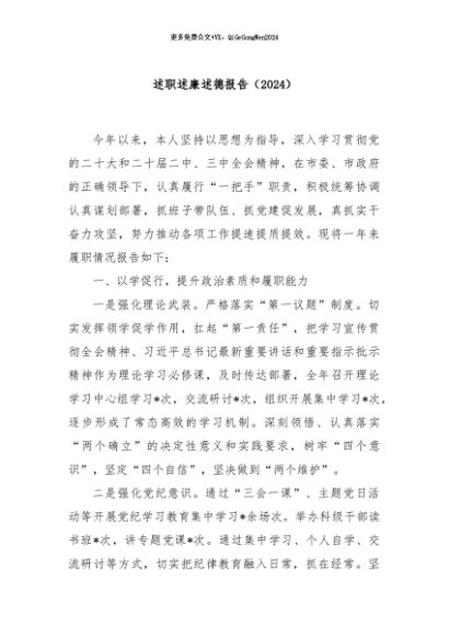 / 【七哥公文】2024年:述职述廉述德报告(2024)+更多免费公文+VX:QiGeGongWen2024