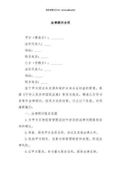 【七哥公文】2024年:法律顾问合同+更多免费公文+VX:QiGeGongWen2024