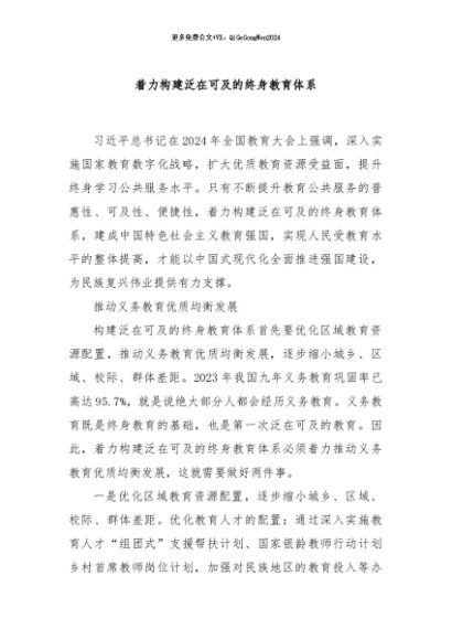 / 【七哥公文】2024年:着力构建泛在可及的终身教育体系+更多免费公文+VX:QiGeGongWen2024