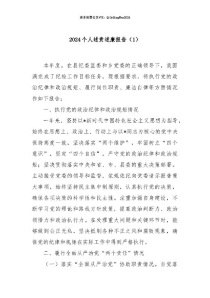 / 【七哥公文】2024年:2024个人述责述廉报告(1)+更多免费公文+VX:QiGeGongWen2024