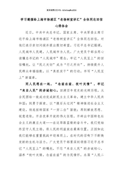 【七哥公文】2024年:学习遵循给上海市杨浦区“老杨树宣讲汇”全体同志回信心得体会+更多免费公文+VX:QiGeGongWen2024
