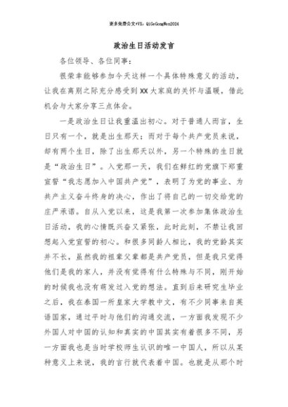 【七哥公文】2024年:政治生日活动发言+更多免费公文+VX:QiGeGongWen2024