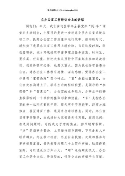 / 【七哥公文】2024年:在办公室工作培训会上的讲话+更多免费公文+VX:QiGeGongWen2024