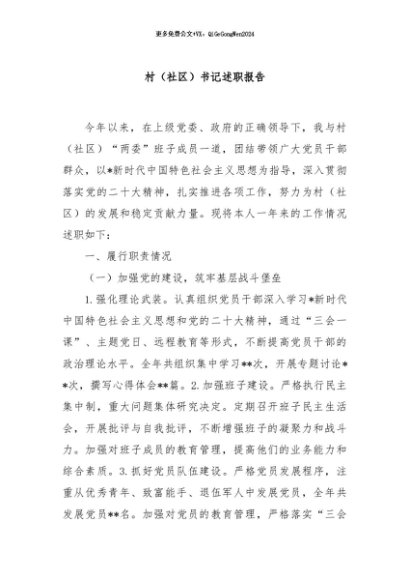 / 【七哥公文】2024年:村(社区)书记述职报告+更多免费公文+VX:QiGeGongWen2024