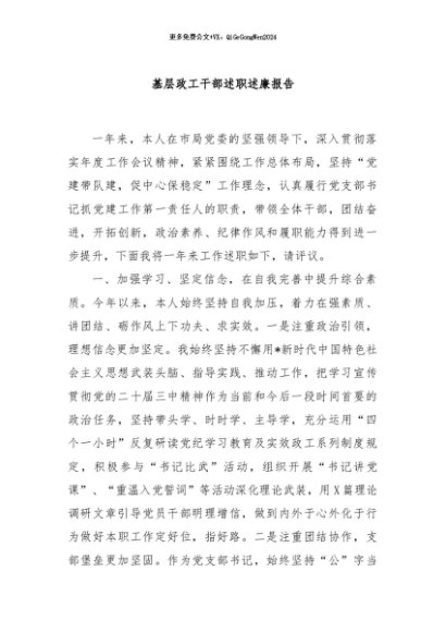/ 【七哥公文】2024年:基层政工干部述职述廉报告+更多免费公文+VX:QiGeGongWen2024