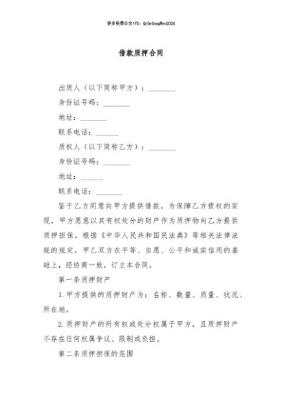 【七哥公文】2024年:借款质押合同+更多免费公文+VX:QiGeGongWen2024