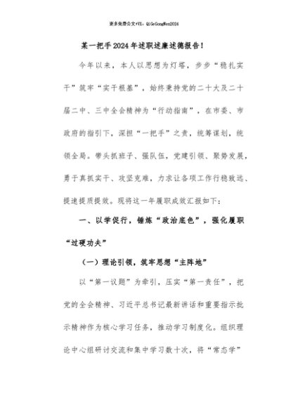/ 【七哥公文】2024年:某一把手2024年述职述廉述德+更多免费公文+VX:QiGeGongWen2024