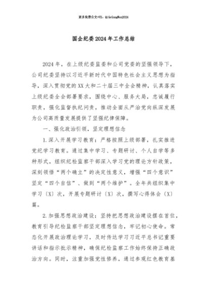 / 【七哥公文】2024年:国企纪委2024年工作总结+更多免费公文+VX:QiGeGongWen2024
