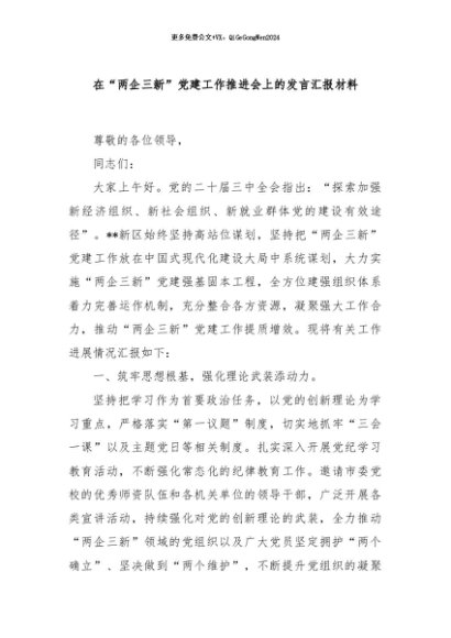 / 【七哥公文】2024年:在“两企三新”党建工作推进会上的发言汇报材料+更多免费公文+VX:QiGeGongWen2024