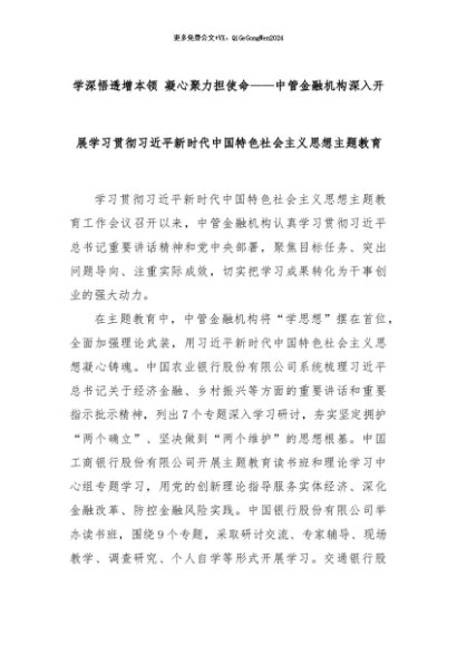 【七哥公文】2024年:学深悟透增本领 凝心聚力担使命——中管金融机构深入开展学习贯彻总书记新时代中国特色社会主义思想主题教育+更多免费公文+VX:QiGeGongWen2024