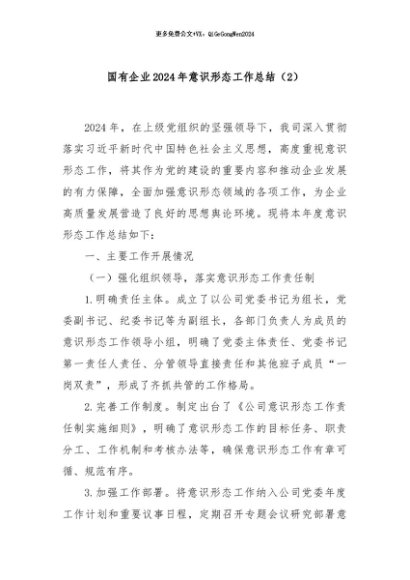 / 【七哥公文】2024年:国有企业2024年意识形态工作总结(2)+更多免费公文+VX:QiGeGongWen2024